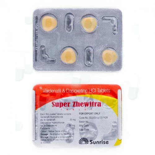 La dosis estándar y recomendada es una tableta de Super Zhewitra (que contiene 20 mg de `vardenafilo` y 60 mg de `dapoxetina`) aproximadamente 30-60 minutos antes de la actividad sexual. No debe excederse una dosis al día.
